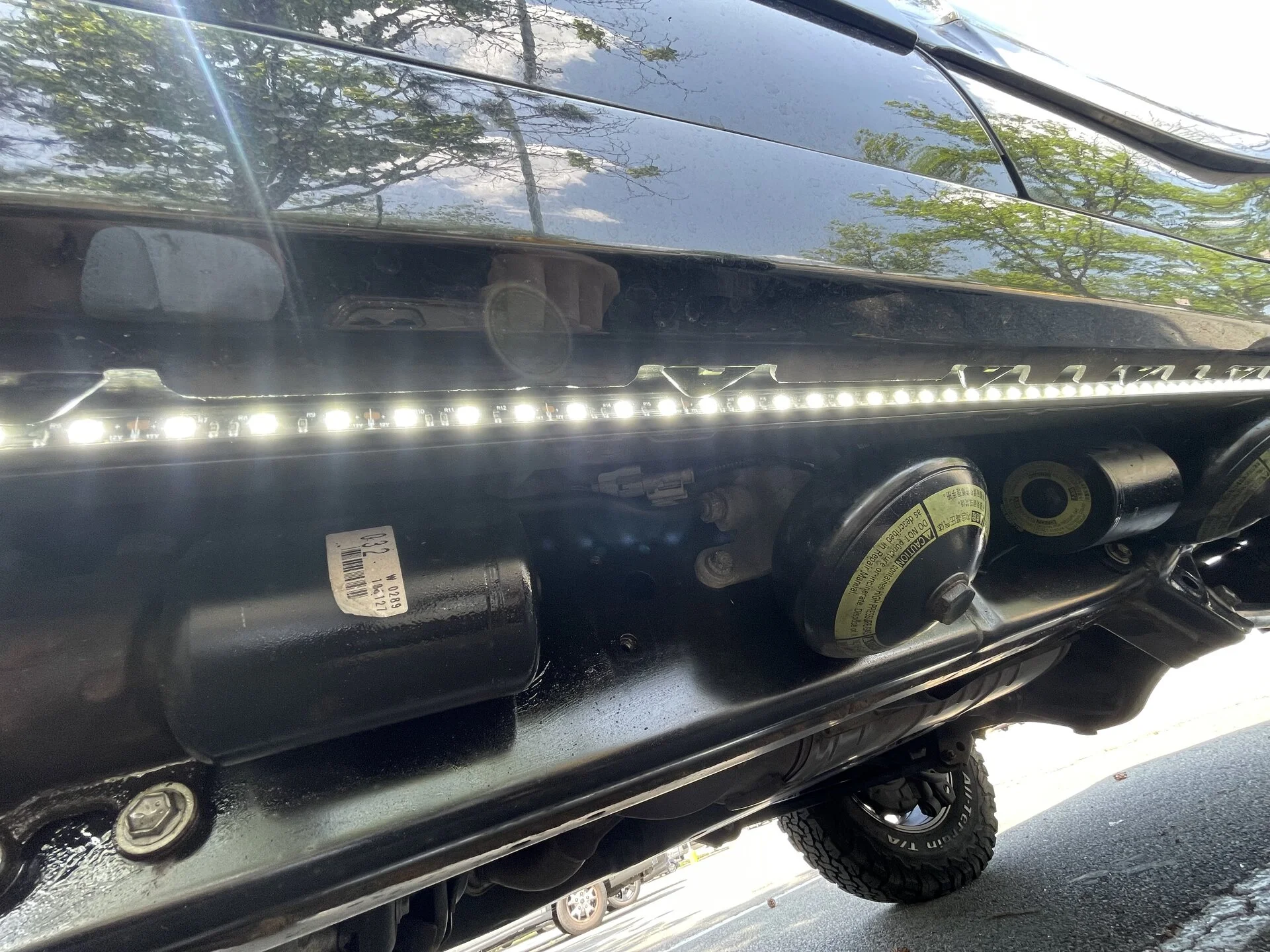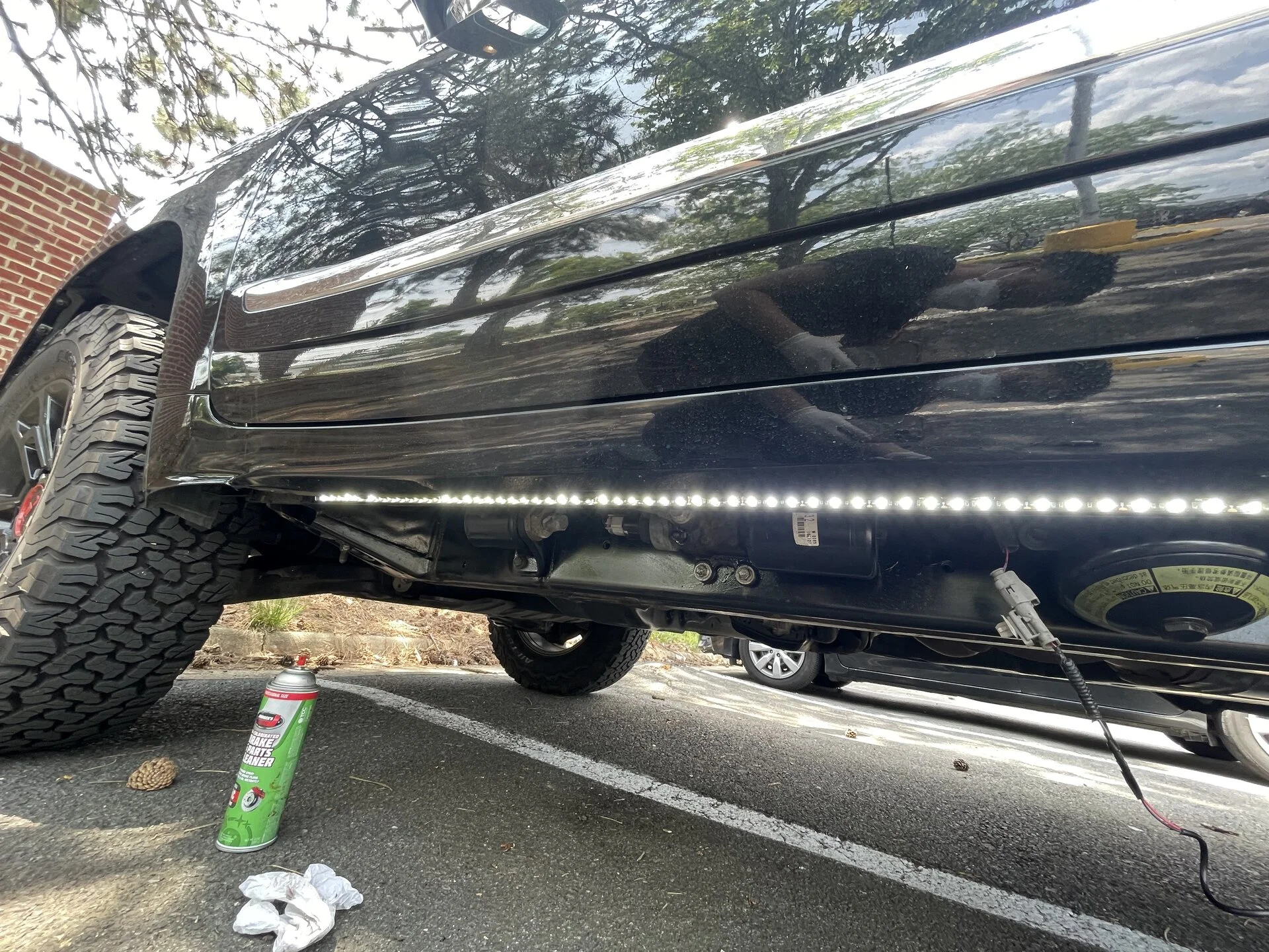 Removed runningboards and added a strip of LED light, it’s dimmable and is 60” long. Sliders should be here today then I can slap them on. The wetness you see is Fluid film, nothing is leaking, We're headed to OBX this weekend for some beach driving so i want to protect it from the salt first