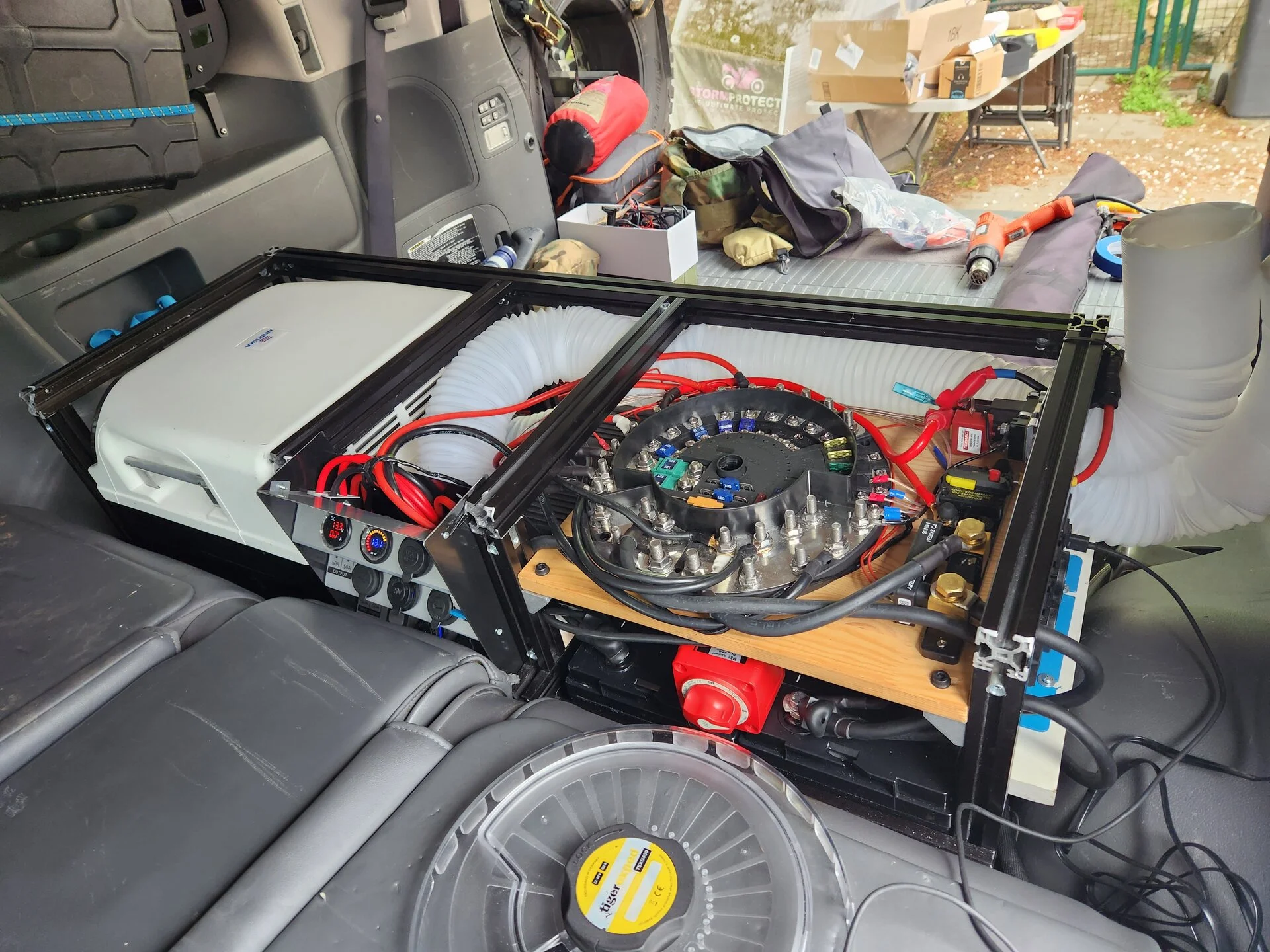 - TigerExped Switch Panel: battery isolator, weboost, 12v fan, and my 3x rock lights (BT)