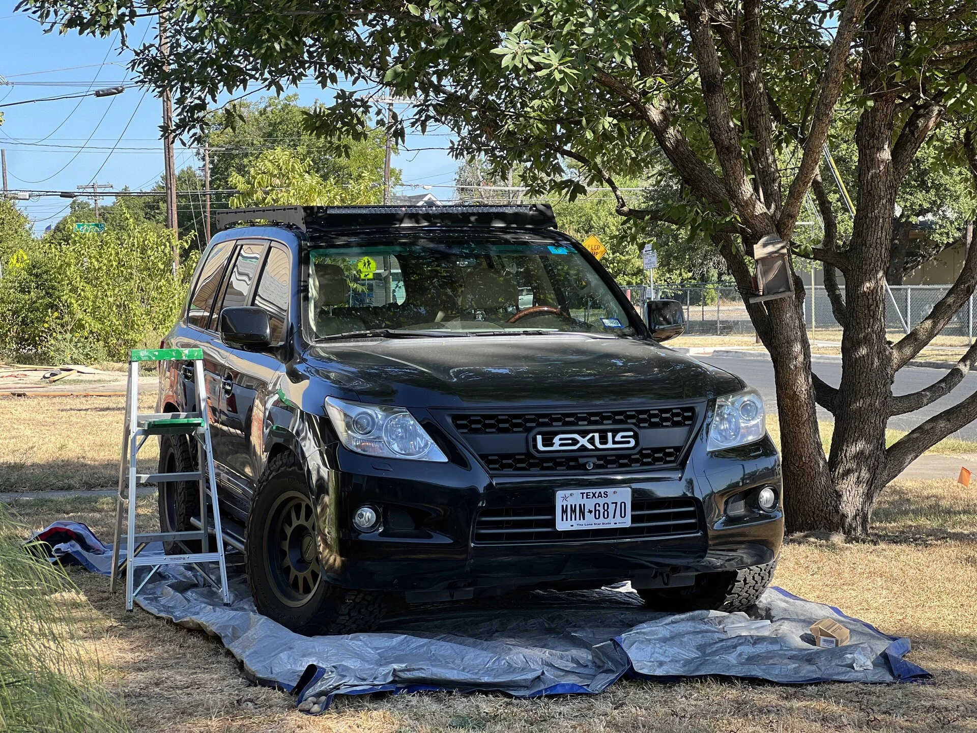 Installed using OEM roof rails and OEM cross bars, did not want to mess with dropping the headliner. The Lexus OEM cross bars distance is little bit off from the Yakima tabs, so the footing are about 1-1/2 to 2 inches off from center of cross bars but still fit very snug and solid.