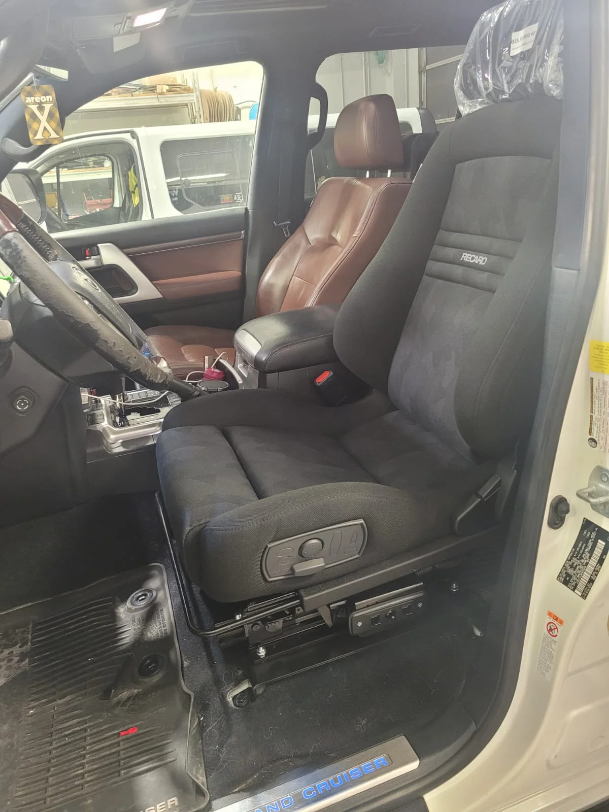 Recaro Ergomed E SAB (airbag completable) install using ASFIR 4x4 bolt-on mounting brackets and Norco 6-way power base.