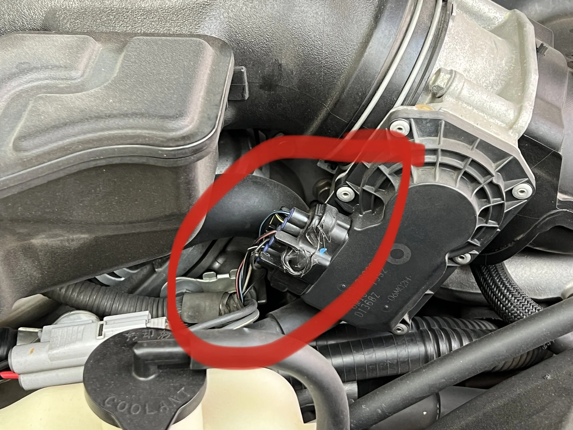 The next connector that was broken is further downstream, leading to the TB. Looks like they broke the clip and covered it with RTV. I didn’t try to unseat it.