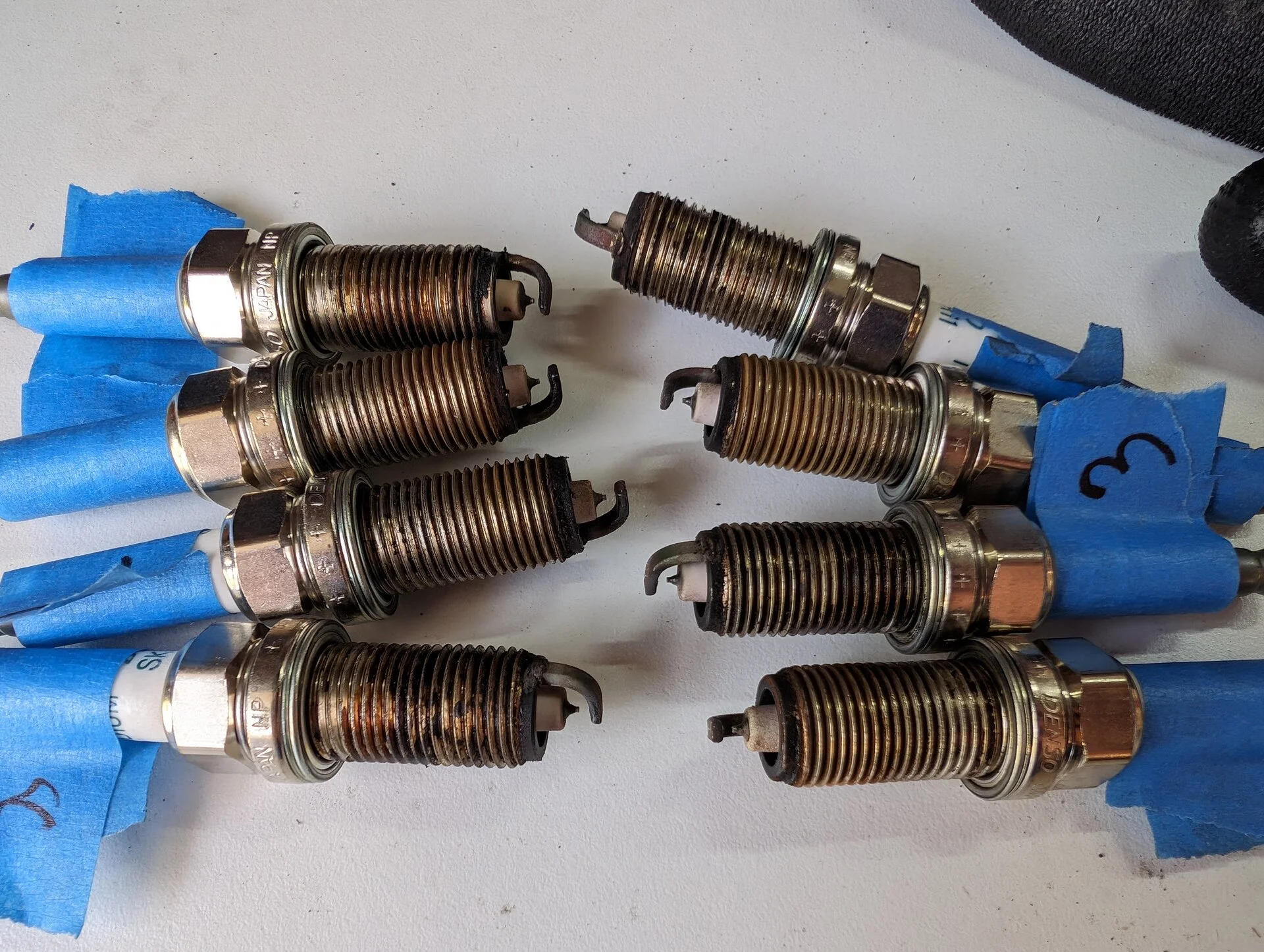 Swapped out spark plugs at 124k miles to get ready for a trip. Old ones look pretty normal. Used OEM as replacements and the FSM instructions. The passenger side rear was the hardest but wasn't that bad. I was able to leave the Slee accessory mount in place (ARB compressor).