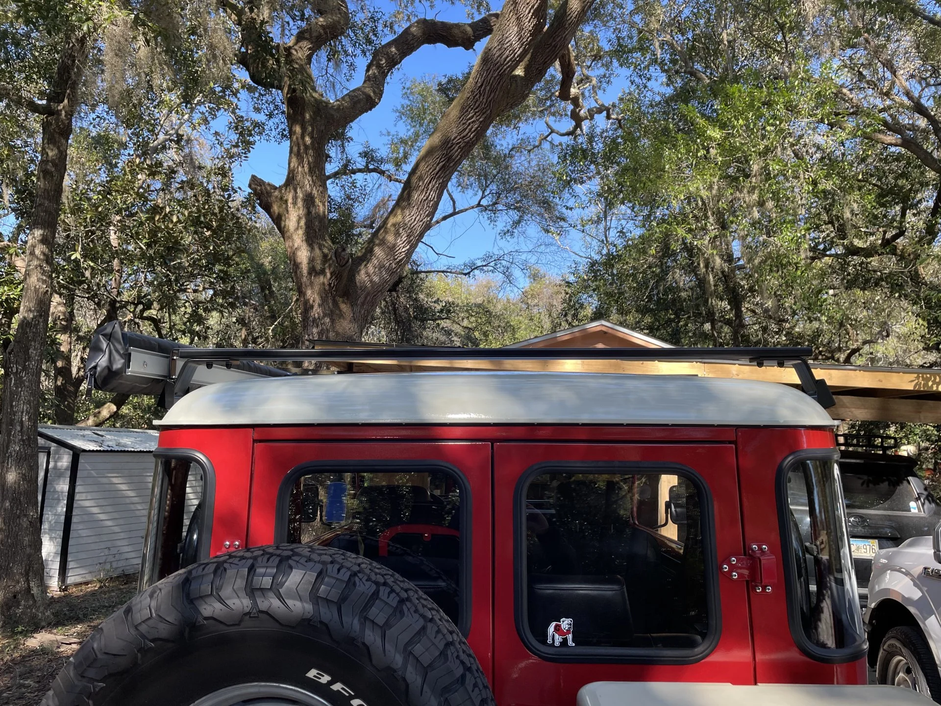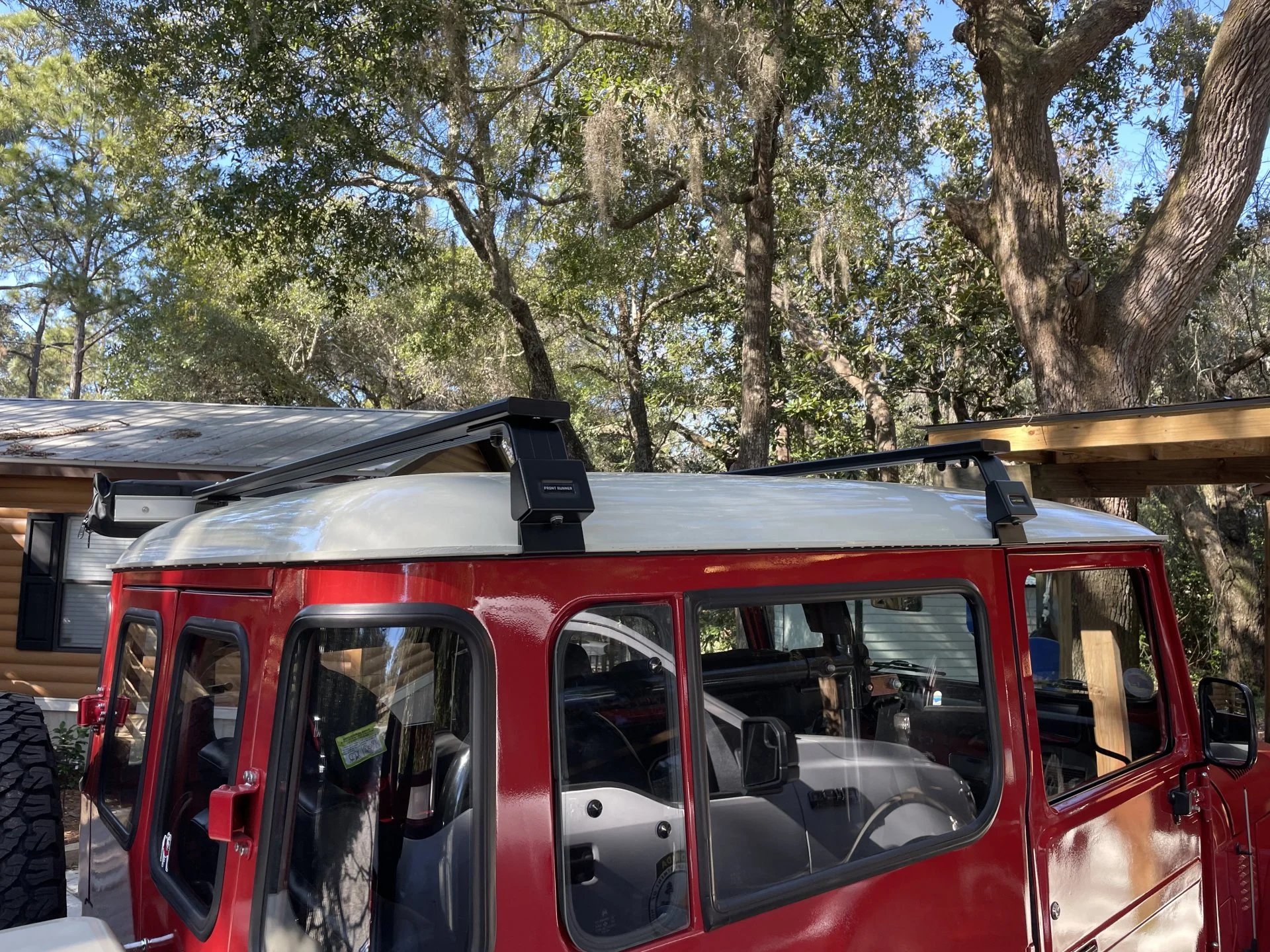 This Saturday I drove about 40 miles over to Lovelady, TX and participated in their Lovefest kickoff parade. It was cold and rainy, so I got a refresher on where all the leaks are (I didn't intend to drive it in the rain it just worked out that way). Then Sunday I pulled the rollbar back out and turned the front hoop around to the correct orientation, thank you @Neilo. It was a 1 beer job since I had already chased all the threads and assembled everything with anti-seize. Here's a picture of the rollbar now in it's forever home: