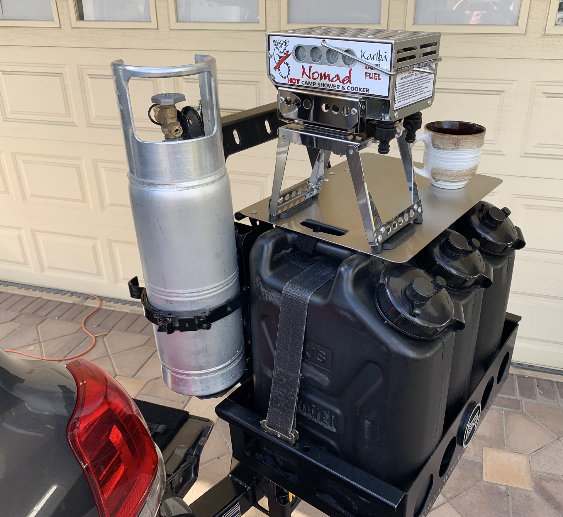 I know that Slee makes that rear basket that one could put jerry cans into, but since I have an aux tank, I don’t think I need extra fuel. Carrying water would be nice, but that cargo basket from slee seems like overkill for that.