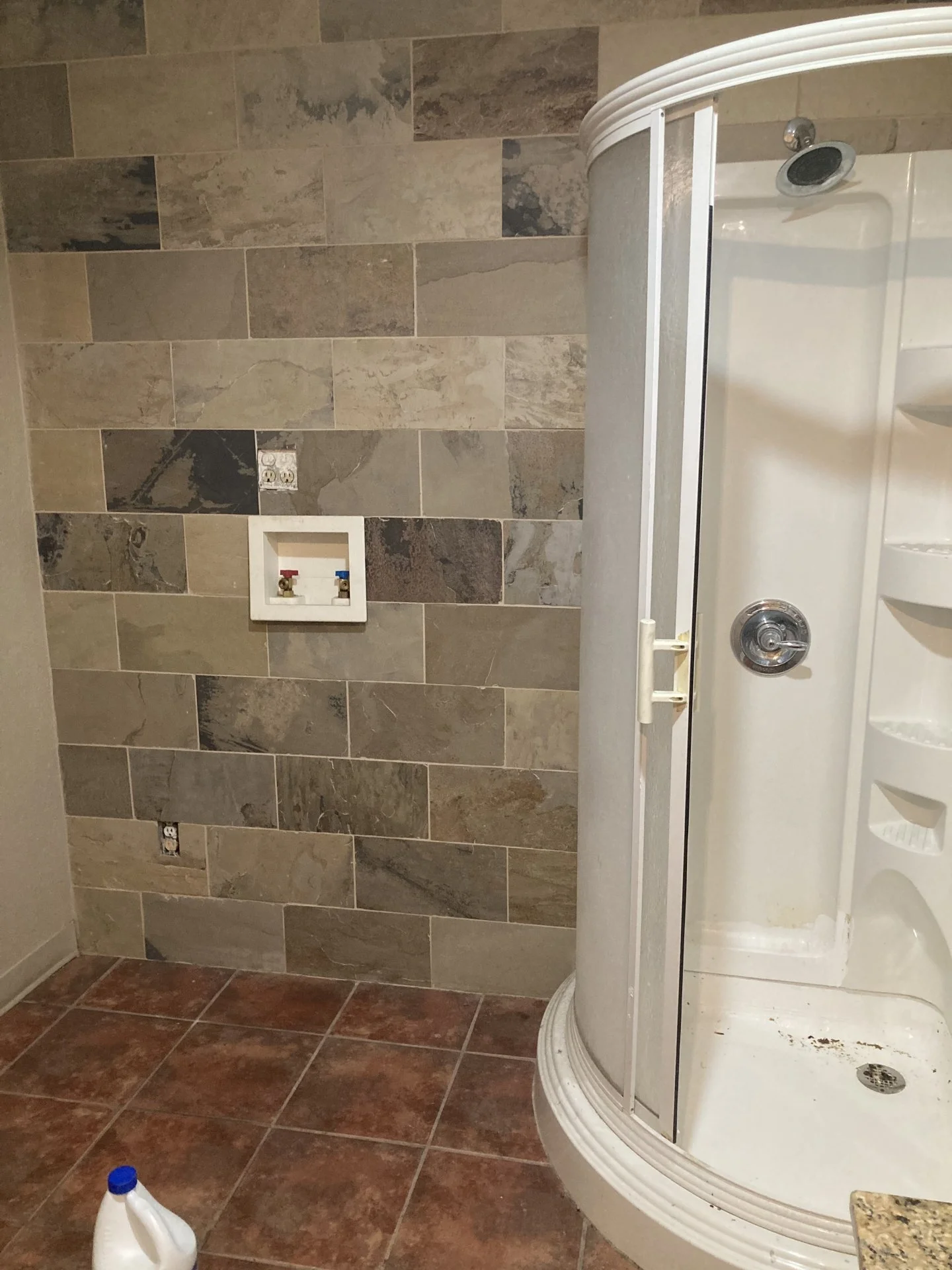 The office bathroom is nice and already has hookups as well as a nice shower. There’s a water heater that might be able to be seen in the background of previous pics