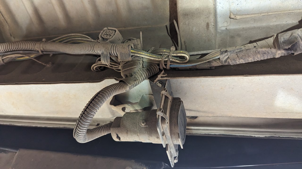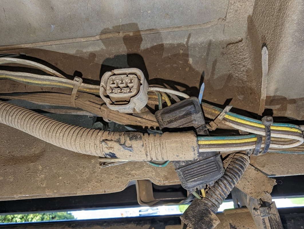 I’m trying to figure out where the best place is to make those connections. I really don’t want to tap into the factory wiring if I don’t have to. Ideally, I’d like to find an external connection, under the truck. I was eyeing the trailer wiring harness which runs externally, along the underside of the rear of the truck which was installed by the PO, along with a trailer brake controller, and a 4pin flat to 7 pin adapter.