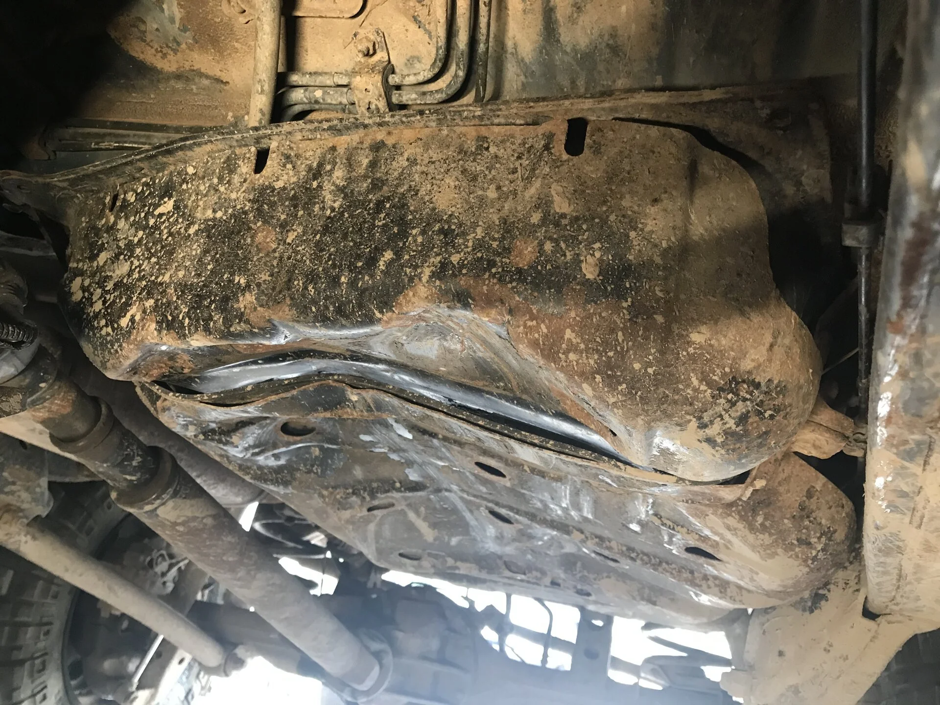 Swapping in my new spare driveshaft today. Going wheelin this weekend.. It’s beat .In my mind the gas tank is helping to protect the drive shaft.