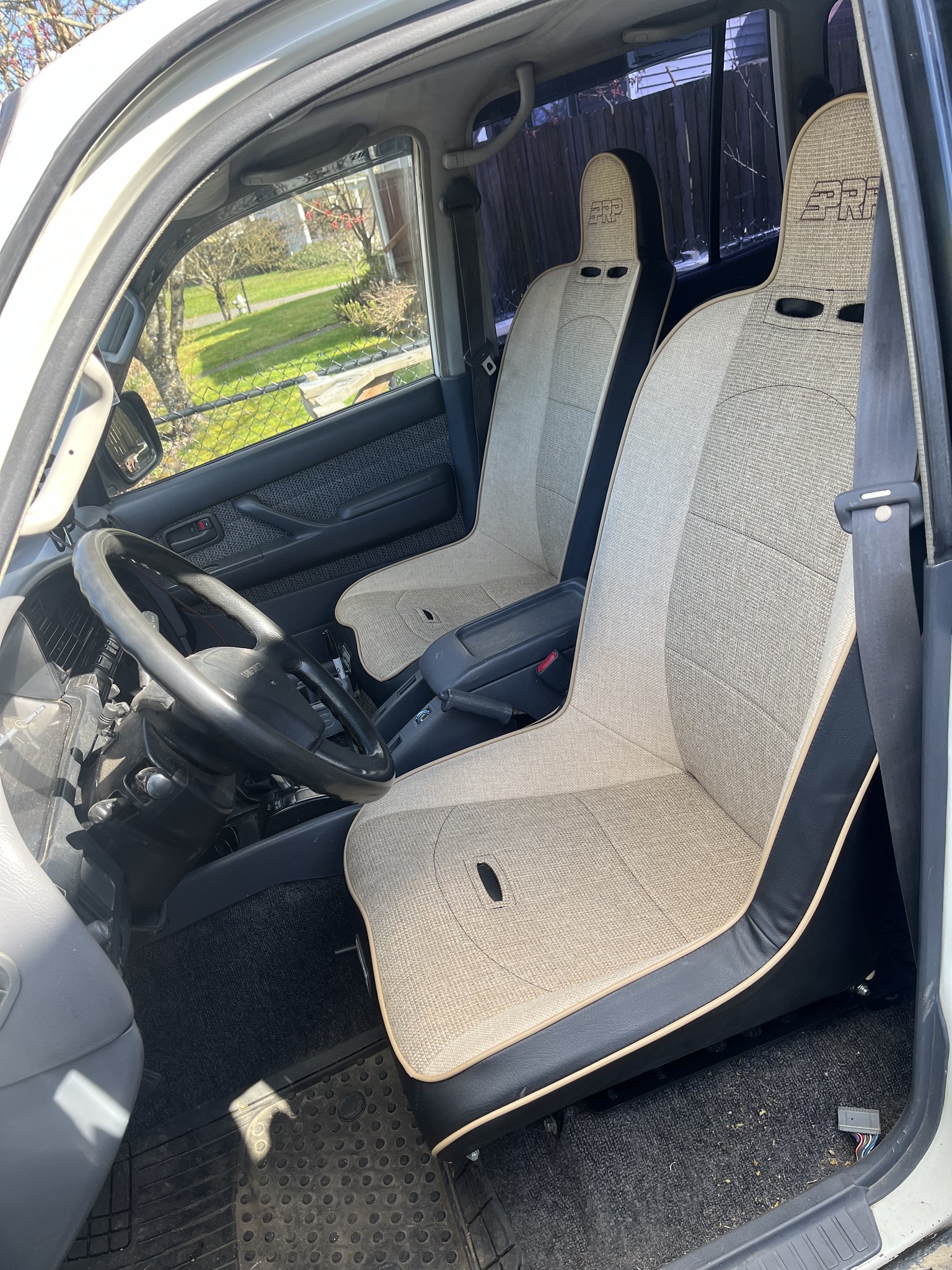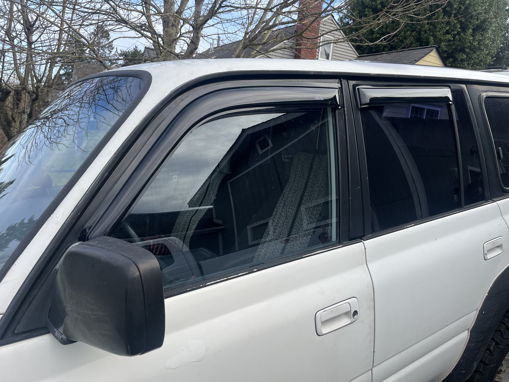 Driving the Land Cruiser back was a bit dangerous but also very enjoyable. Lots of giggles. Every turn was an adventure as the tires were cracked and warn, the shocks were bad, and every suspension bushing was completely warn out. Total boat on the road. The brakes were questionable, the windows wouldn't go up and down, and it had a bad exhaust leak. It had a cracked front windshield, and a warn out interior. The good is that it has no rust at all. Super solid.