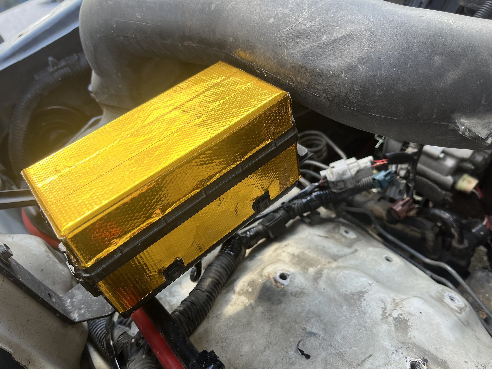 Moved the engine bay fuse box farther away from the exhaust with a custom bracket and wrapped it in gold heat reflective tape, cleaned all contacts, no more starting issues