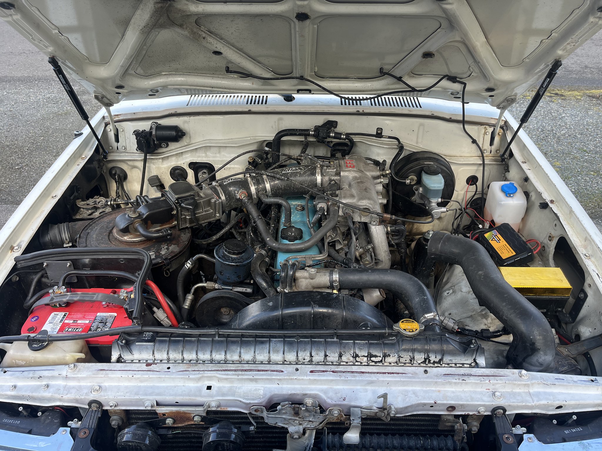 Right when I thought I had the 80 running tip top, we took it on a trip over to my moms, and on the way back it blew the hell out of the top coolant hose while we were driving. Coolant gauge never moved so I'm guessing the temp sensor was bad. Scared the s*** out of both of us. Had to sign up for AAA on the side of the road, and get a tow home. Then I had the pleasure of of replacing the head gasket and all the coolant parts besides the radiator in a weekend. Got it done in about a day and a half.
