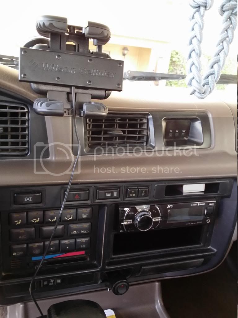 I typically keep the internal antenna and the booster itself locked in the glove box when not in use since I would rather not have it come up missing and have to drop another 300 on a replacement. When in use I have it like this: