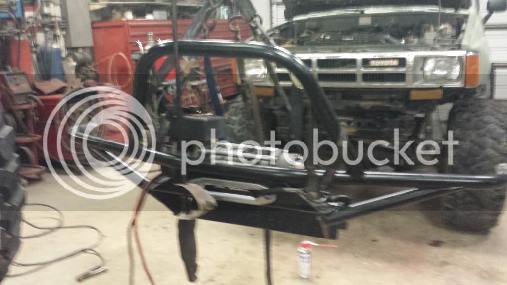 Then we reinstalled the bumper using a gantry crane to hold it in place. All mounted up and it is more sturdy than it has ever been.