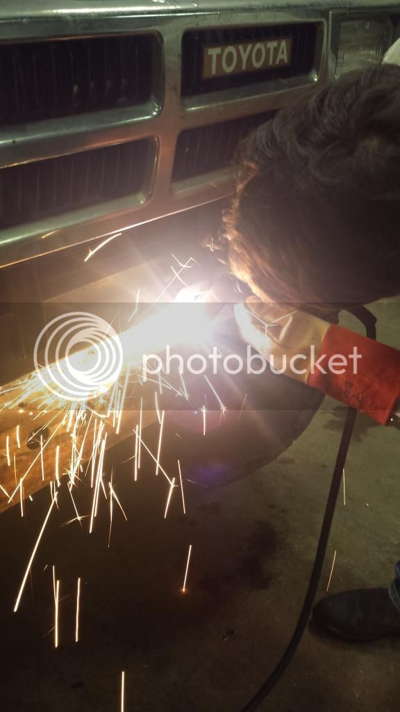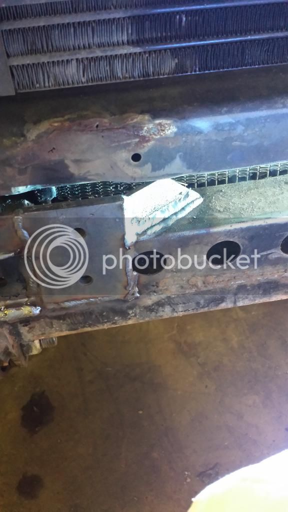 After wheeling at Superlift last weekend and using my front bumper as a ramp to get up some ledges I managed to pull the factory captured nuts almost out of the front crossmember. We pulled the bumper off today and cut the top mount and captured nut off. We then cut the section of the crossmember that had the lower captured nut out.