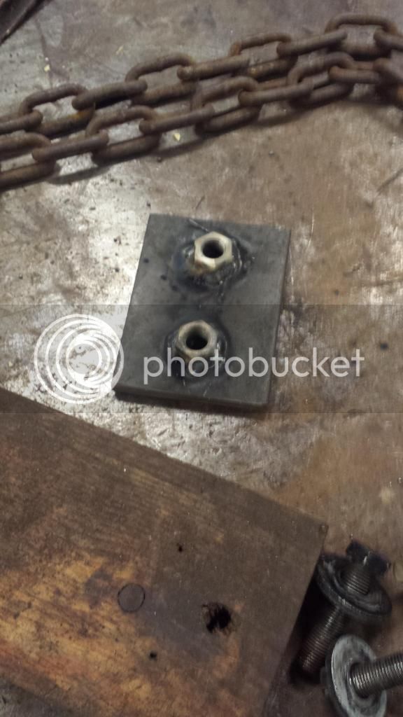 We then made two plates out of 1/4" plate and thread some 1/2" holes and welded some nuts on the backs of the plates. We fit these to the cavities where we had torched out the captured nuts.