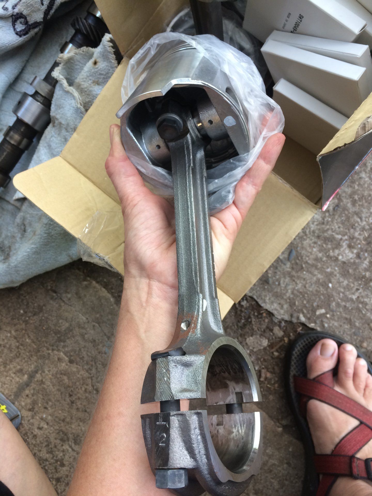 Looks like you're good to go!Stock rods, new wrist pins, oversized ITM piston and ring set, resurfaced flywheel, ground and polished crank undersized .25mm.