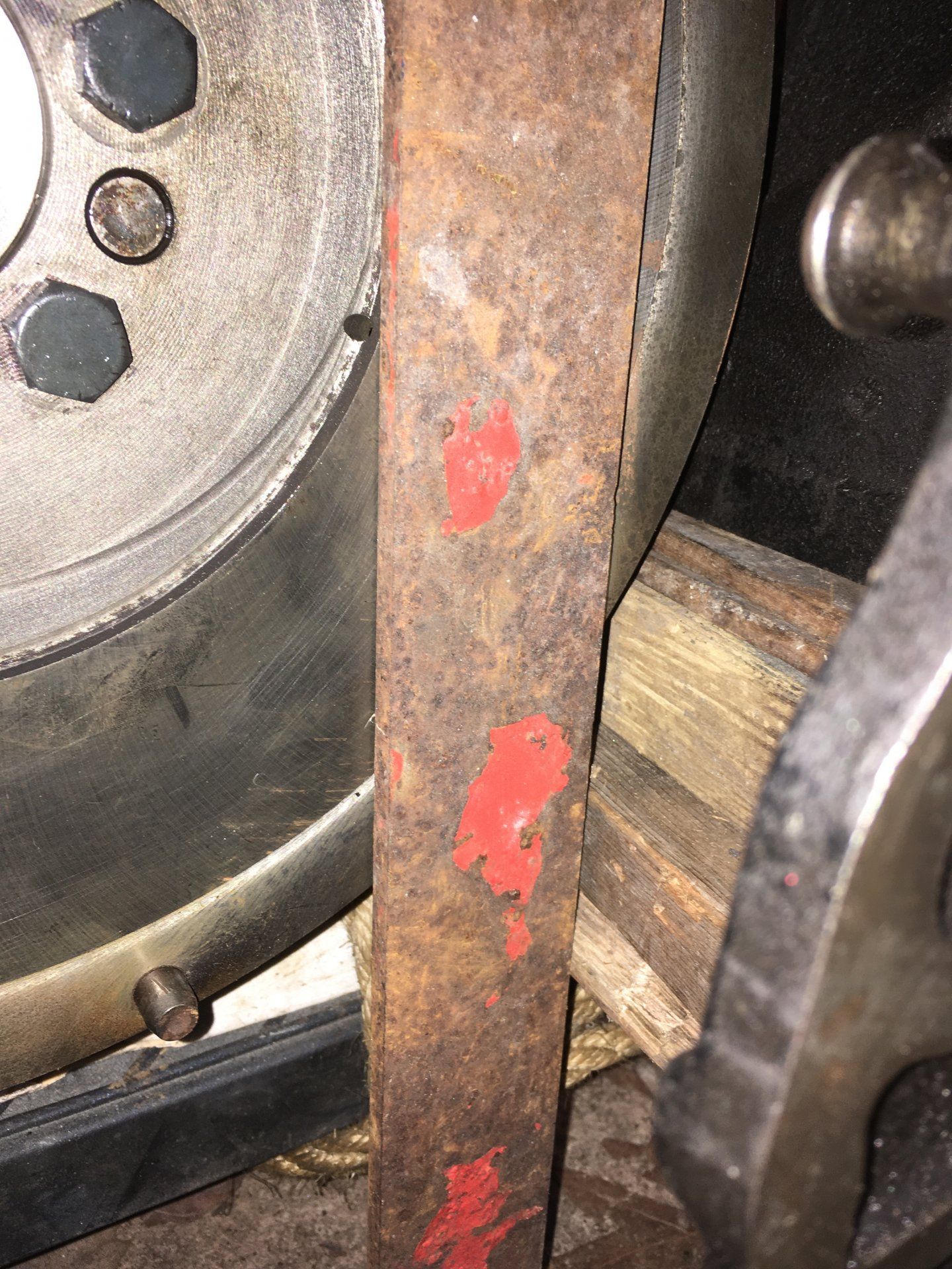 Then the clutch disc and it’s cover. That was a joy. Engine is held up by sections of wood under the edge of the BH on top of a dolly. I initially couldn’t fit the cover under so I just started tapping the wood pieces forward till I could wedge of cover under the BH edge and over the disc. And then getting the cover to the right places for the dowels and get a few bolts in place?! Dang, I ended up laying on my back holding it w/ my left as I turned it w/ my right. I’ll feel that tmrw in my arm!