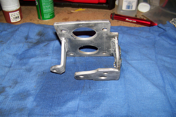 Bracket: Homebuilt. A lot of trial and error, but it is made out of 1/4" steel plate. I sand blasted it in a buddies blast cabinet, so that is why it looks a little weird. Aluminum Oxide was the blast media. Could be prettier, but it will be mostly hidden, so I didn't get too crazy with the finish work.
